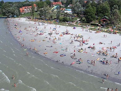 Pár száz méterre található a balatonlellei szabadstrand, amely a déli part egyik leghosszabb ingyenes egybefüggő strandja. Számos büfé található a parton.